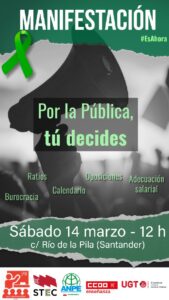 Hoy 14 de marzo volvemos a salir a la calle para defender la Enseñanza Pública no universitaria. Sumémonos todos y todas y que suenen nuestras