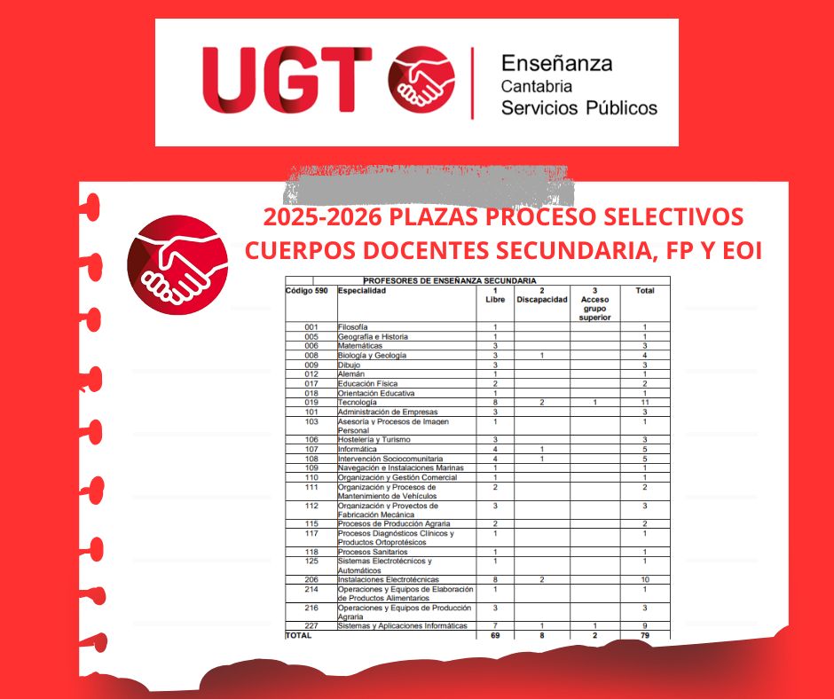 En marzo de 2025 se publicó en el Boletín Oficial de Cantabria la Orden EDU/12/2025, de 27 de marzo de 2025, que establece las bases y convoca procedimientos selectivos para el ingreso y acceso a diversos cuerpos docentes:
